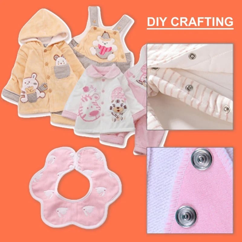 Ez a patentos rögzítő eszközkészlet tökéletesen megfelel a DIY kézműves munkákhoz vagy könnyű ruhák készítéséhez. Használható babaruhákhoz, mászókákhoz, sapkákhoz, ingekhez, rugdalózókhoz, burp cloths-hoz, Barbie/babaruhákhoz, kisállat ruhákhoz, vagy bárhová, ahol rögzítők szükségesek.