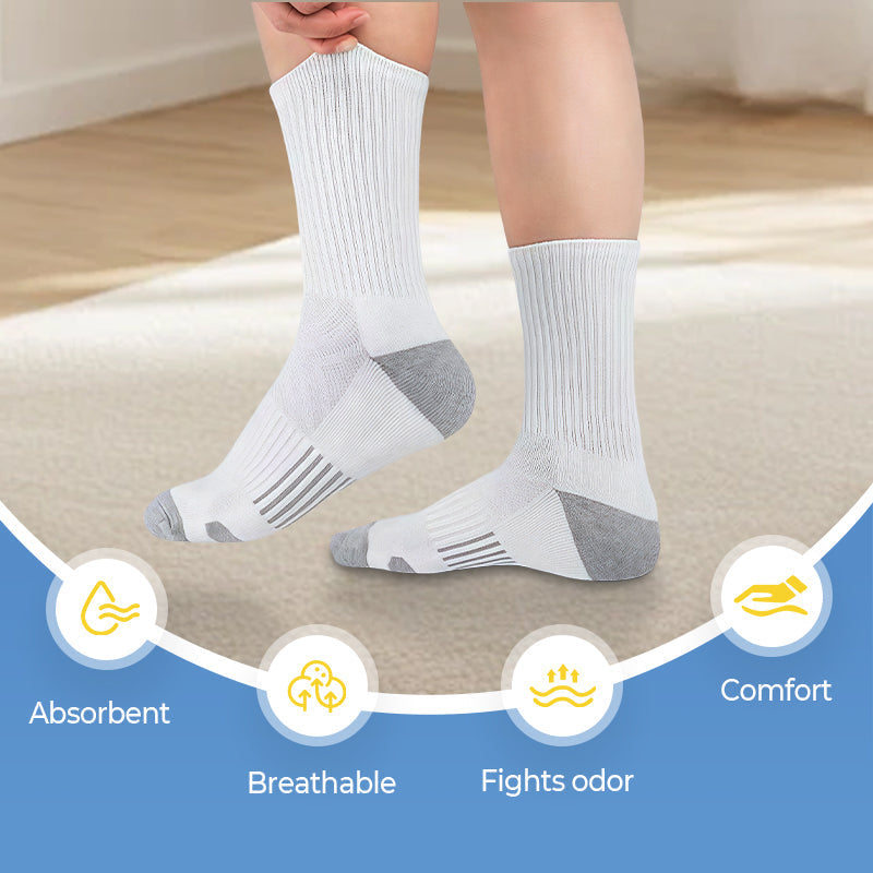 IZOMLÉK ELVEZETŐ TELJESÍTMÉNY – Maradjon száraz, maradjon aktív. Kiváló minőségű keverékből készült zoknik, amelyek még intenzív edzések vagy hosszú napok során is szárazon tartják a lábát. Akár az edzőteremben van, akár úton, a fejlett izzadságelszívó kialakítás elvezeti a nedvességet a bőrről, megelőzve ezzel a kellemetlen érzést és a nedvességet.